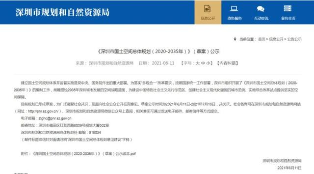 6月11日,深圳市规划和自然资源局公示《深圳市国土空间总体规划(2020-2035)》(草案)(以下简称《规划》)。据悉,深圳过去40年曾组织编制了三版总体规划,对促进城市快速有序发展发挥了十分重要的引领作用。